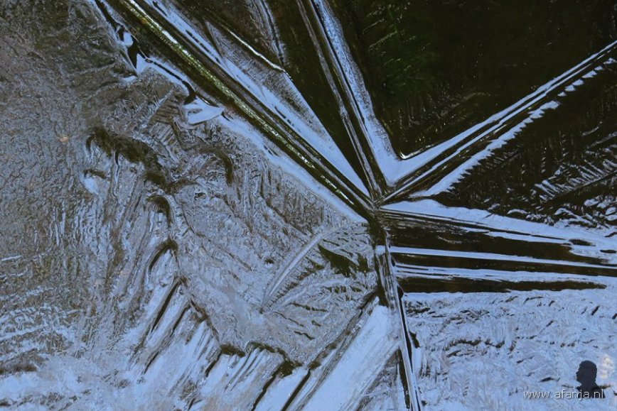 Op 4 januari daalde de temperatuur in de vroege ochtend tot onder het vriespunt. Omdat daarbij af en toe regende, ontstond een spiegelgladde ijslaag die zeer hinderlijk was voor het verkeer. Het KNMI kondigde Code Rood af en adviseerde om niet de weg op te gaan als het niet beslist nodig was. Het openbaar vervoer reed in de noordelijke provincies mondjesmaat of helemaal niet, en de meeste scholen gingen drie dagen dicht. Een vergelijkbare hardnekkige ijzelsituatie hadden we hier sinds begin maart 1987 niet meer gehad. Voor het verkeer was het lastig, maar voor de fotograaf bood het weer een buitenkansje om wat ijzige kleinoodjes vast te leggen …