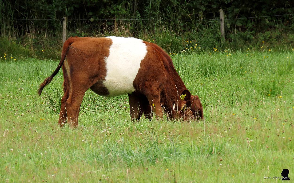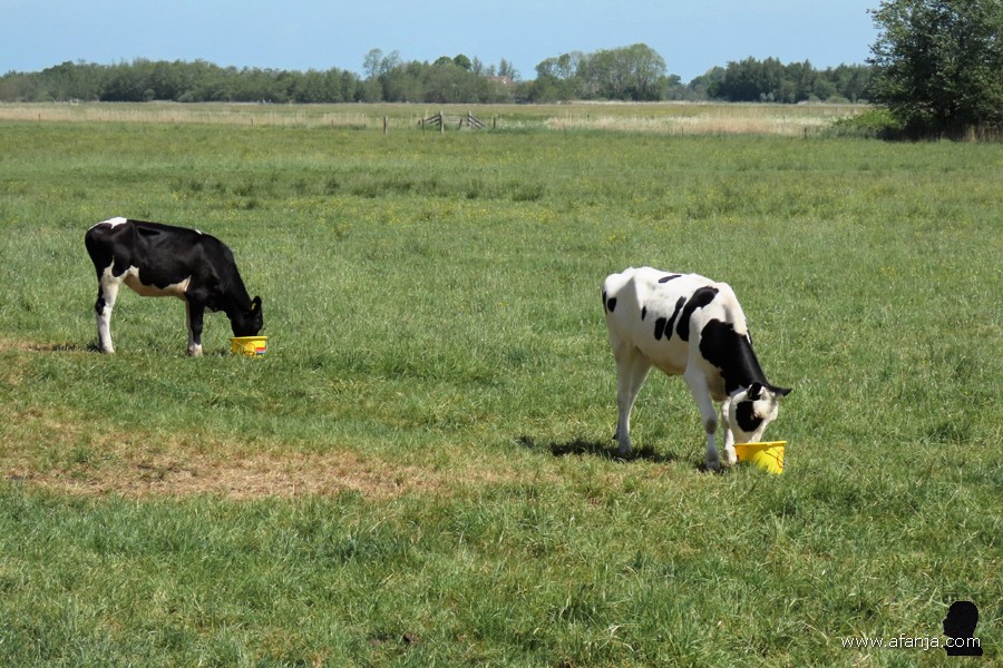Het weiland links van het pad werd bevolkt door wat jongvee. Rechts waren in de verte de zachte glooiingen van Gaasterland te zien. Het paadje lag er trouwens keurig bij. De klinkers waren vervangen door asfalt, zodat ik er goed uit de voeten kon. Dat betekent bovendien, dat ik in de toekomst zo nodig ook met de rolstoel makkelijk op het Oudemirdumer Klif kan komen …