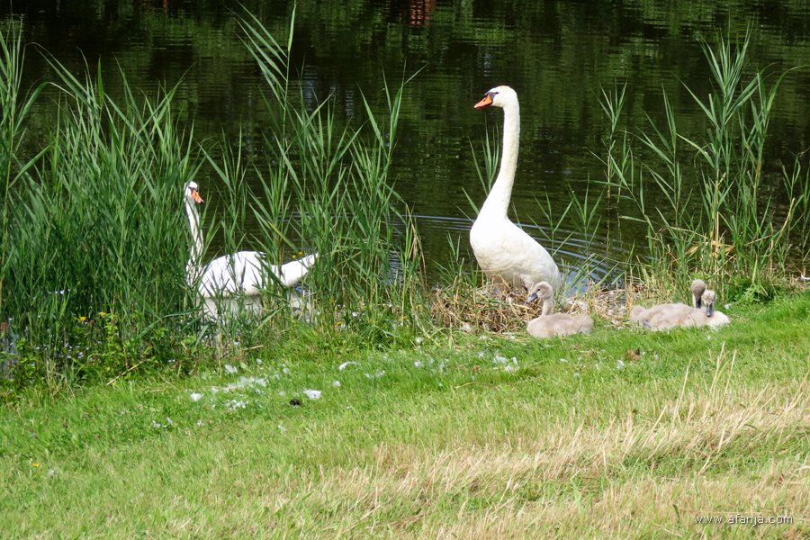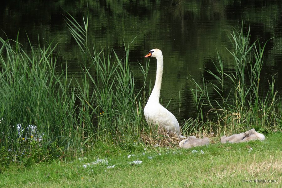 Na enige tijd vloog er een knobbelzwaan langs de oostelijke oever van de plas voorbij. Hij gaf me de kans om eindelijk de onlangs ingestelde ‘vogelknop’ op mijn camera eens te proberen …