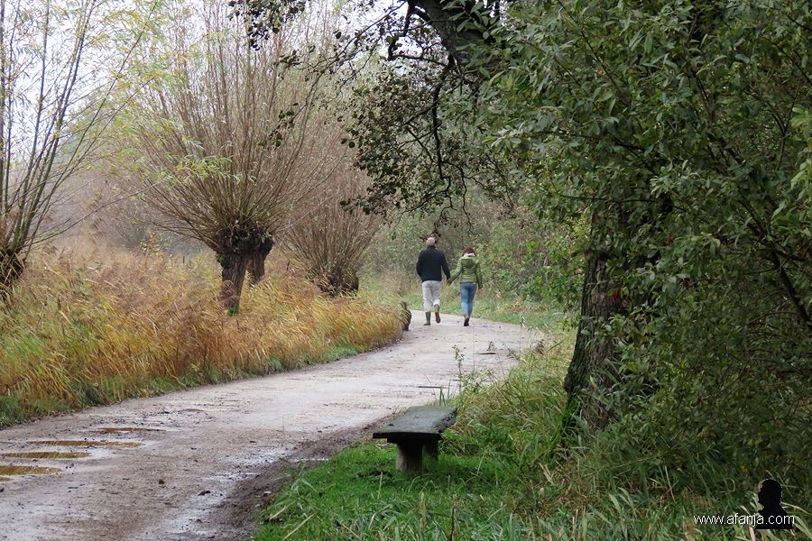 Bijna halverwege zag ik een paar keurig geknotte wilgen aan de andere kant van het Opeinder Kanaal staan. Ze werden mooi weerspiegeld in zachte golfjes. Hmmm … halverwege, en ik begon mijn benen al te voelen. Ik zou natuurlijk nog op mijn schreden terug kunnen keren …