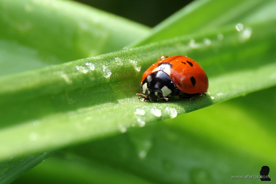 Na de bloemen van gisteren zijn vandaag de insecten aan de beurt, die ik de laatste dagen in de tuin heb aangetroffen. Om te beginnen een lieveheersbeestje dat een gerieflijk slaapplekje had gevonden …