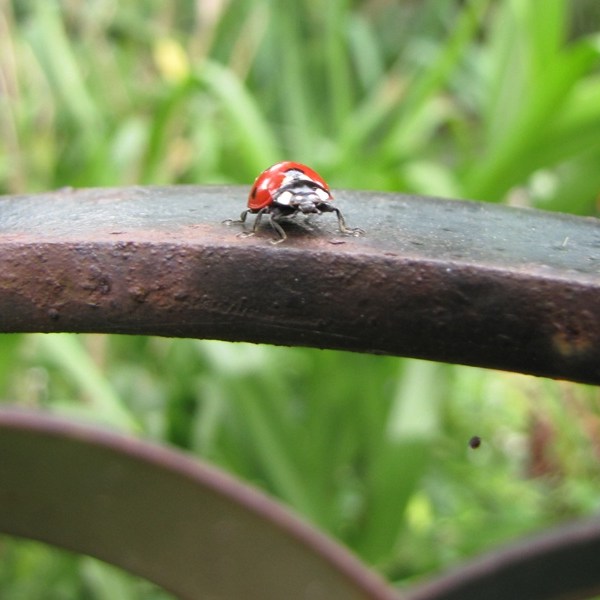Terwijl ik even later wat lag te sluimeren, bekroop me het gevoel alsof ik bekeken werd. Een blik door de ramen leerde dat daar niets te zien was. Het gegluur moest dus van binnen komen. En toen zag ik ineens vanuit een ooghoek iets bewegen … Op het tafeltje naast mijn stoel bleek een lieveheersbeestje bezig te zijn met rek- en strekoefeningen op mijn iPad …