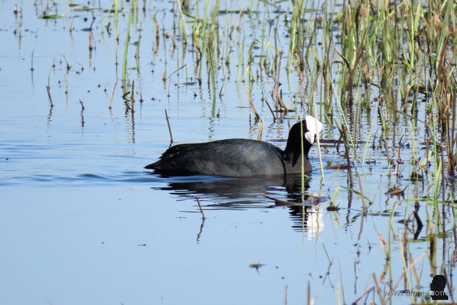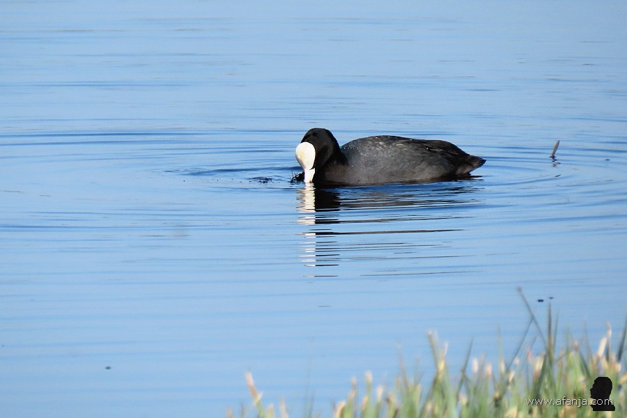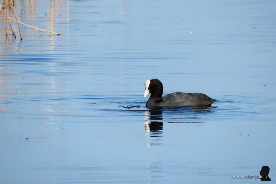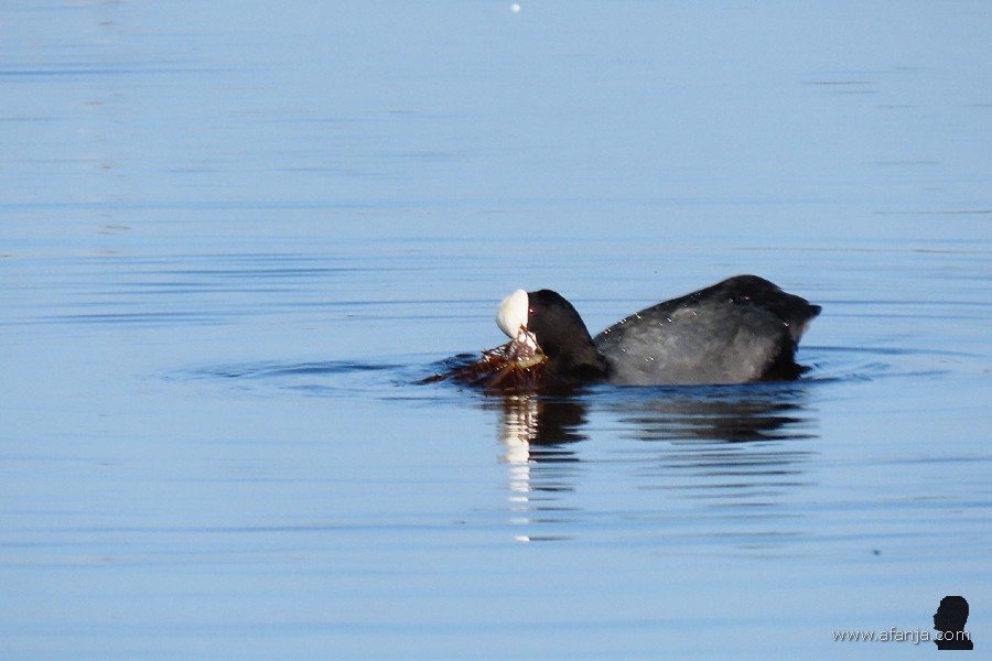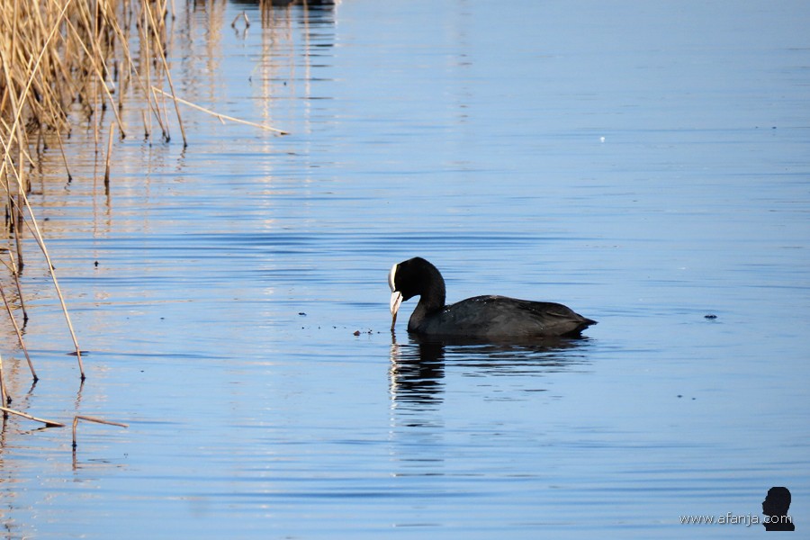 Verder heb ik alleen op heel grote afstand een eenzame knobbelzwaan zien dobberen. Het enige levende wezen dat zich op nette afstand liet zien, was een passerende meerkoet …