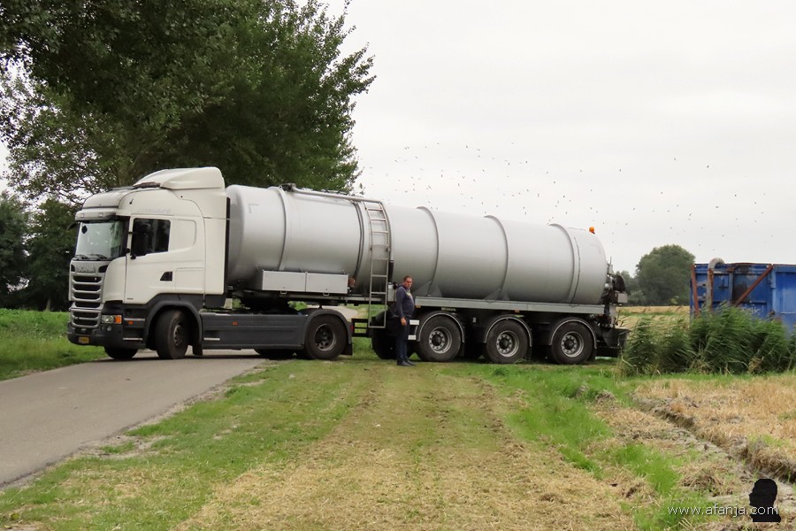 We naderden het einde van deze rondrit door het noorden van Fryslân. Nadat we de laatste dijkcoupure aan de Alddyk hadden bekeken, reden we terug richting Paesens. Onderweg hebben we nog even een korte tussenstop gemaakt om nog wat foto’s te maken van de aardappeloogst in de polder achter de Waddendijk …