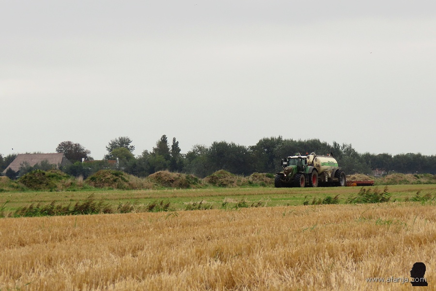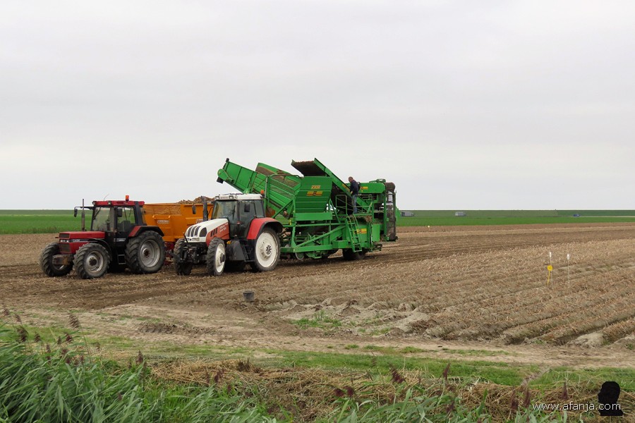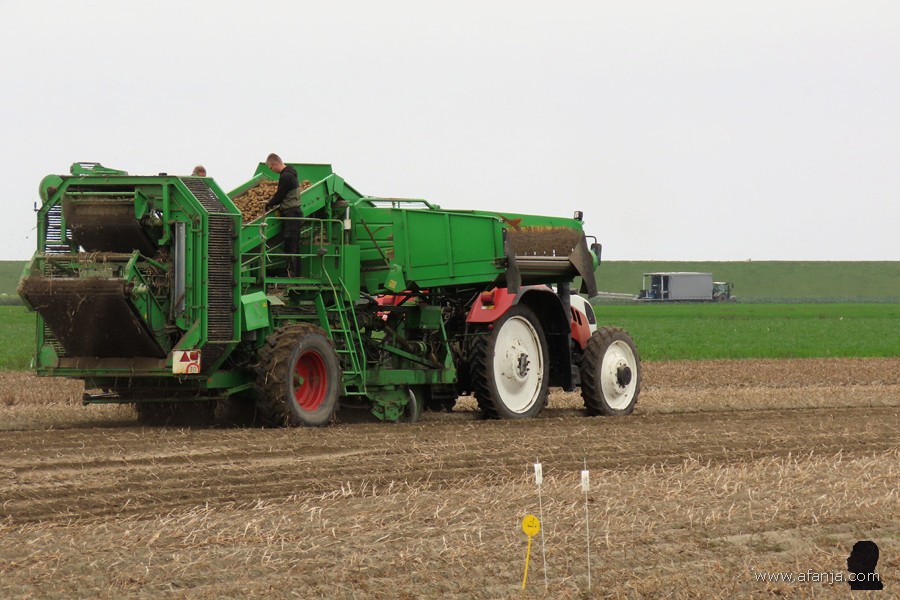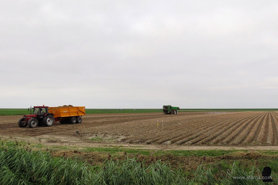 In mijn eigen omgeving wordt weinig meer geoogst dan maïs. In 2010 heb ik een keer wat foto’s gemaakt bij een akker tussen Langezwaag en Luxwoude waar ook aardappelen geoogst werden. Hier op die indrukwekkende lege vlakte aan de Waddenzee levert het toch weer een heel ander beeld op …