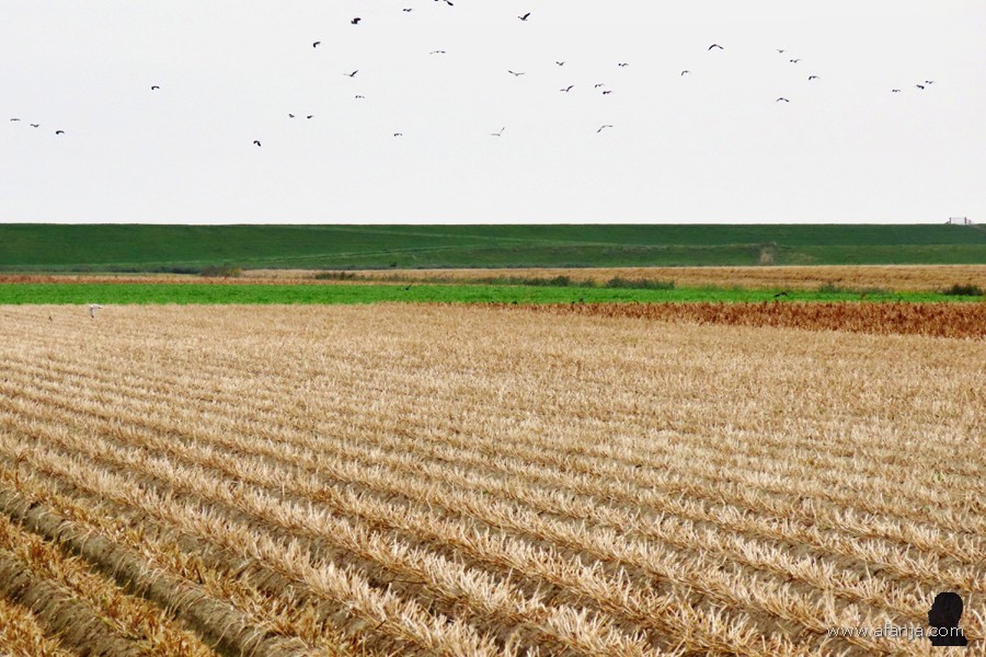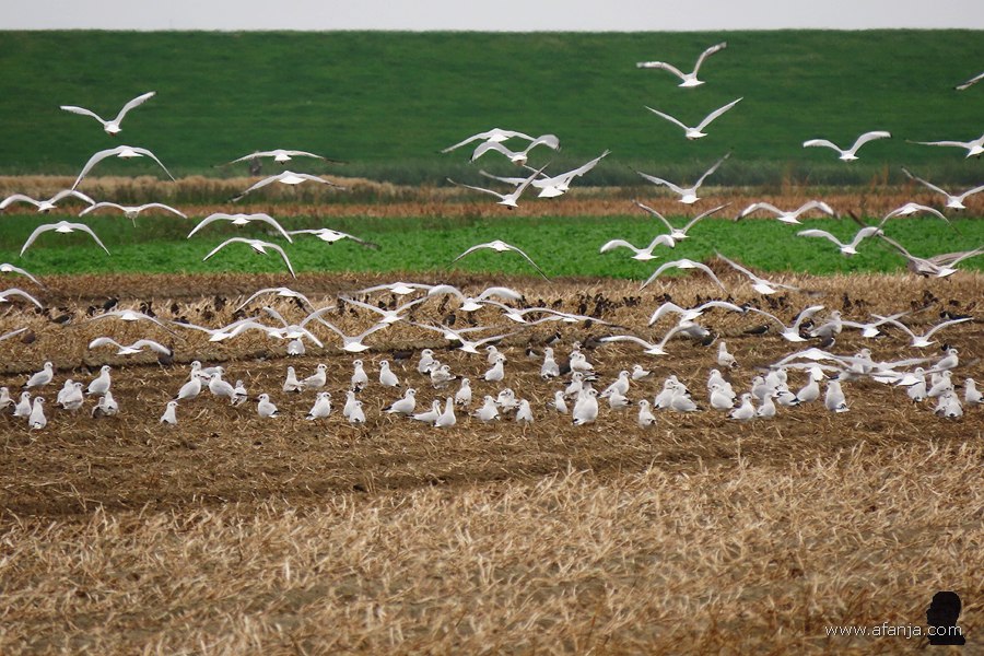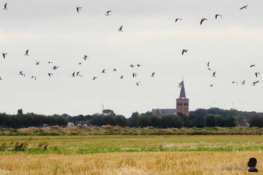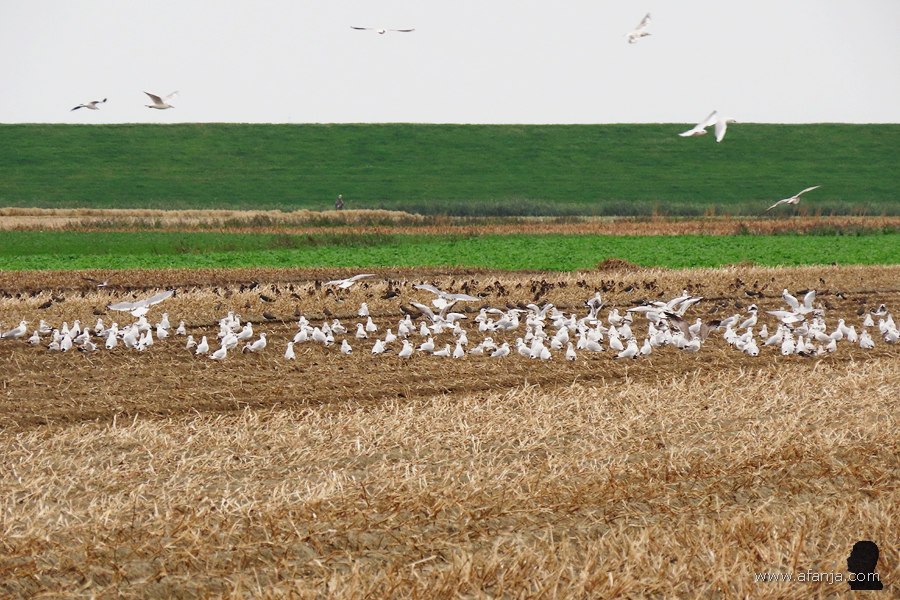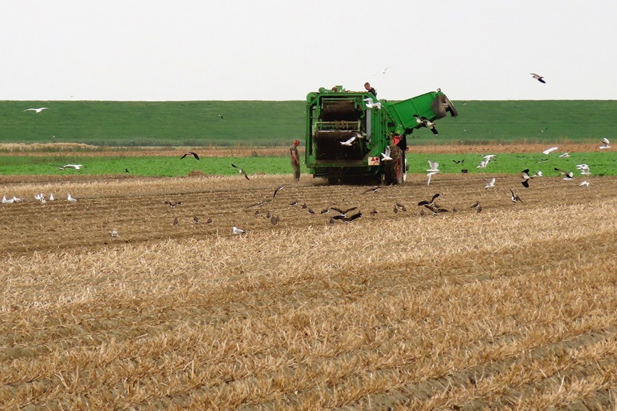 Wanneer de boer na verloop van tijd klaar is met zijn werkzaamheden, keert de rust langzaam weer op het akkerland achter de dijk. De vogels zoeken hun heil elders …