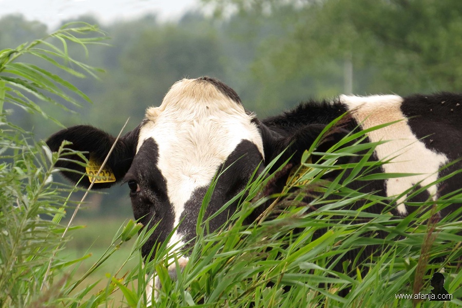 Niet alle vee staat overigens op stal, deze bijzondere melkkoe trof ik bij Tijnje aan …