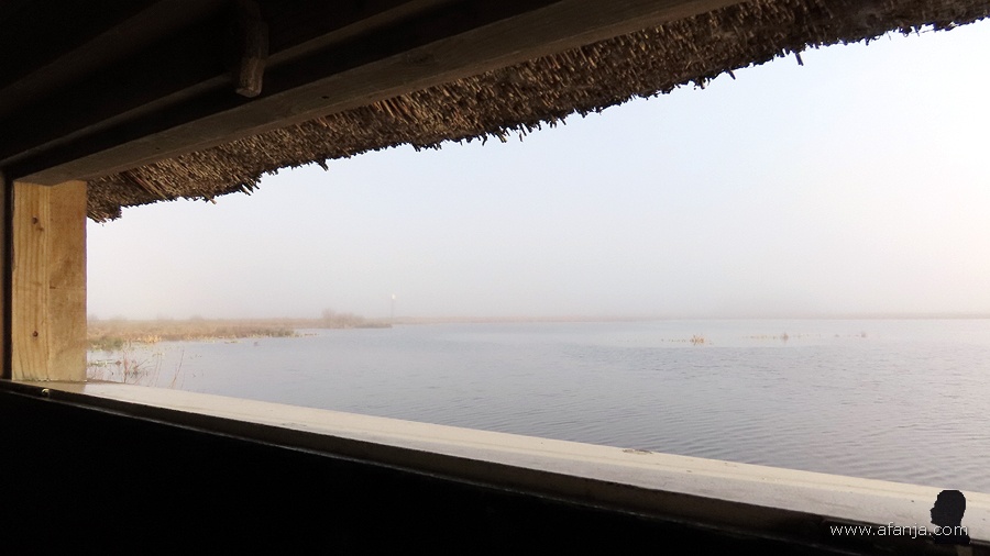 Het was die ochtend mistig en koud. De nacht ervoor was de temperatuur met -0,8°C voor het laatst in januari lichtjes onder het vriespunt gedoken. Het was oorverdovend stil op en rond de plas …