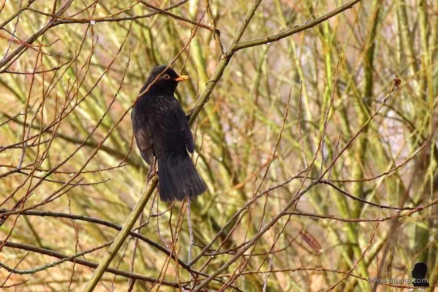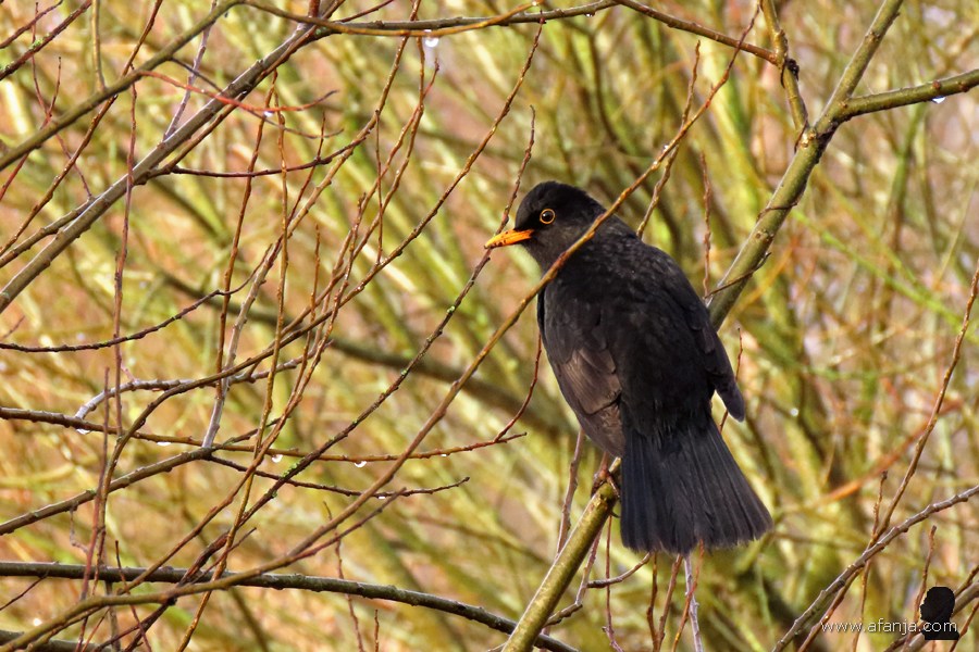 Terwijl ik over het met wilgen omgeven paadje richting auto liep, streek er vlakbij me een merel neer. Even leek er van mist geen sprake te zijn, zonovergoten bleef de merel geduldig voor me poseren …