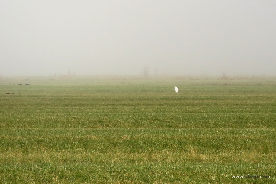 Via de Alle om Slachte en het Nonnepaed – meest gebruikelijke route – zette ik koers naar huis. Nog voordat ik aan de splitsing van beide wegen toe was, was er een witte vlek in de mist te zien …