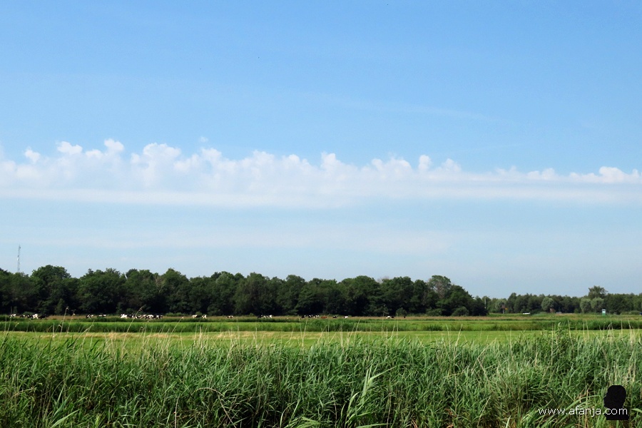Van It Útein, waar ik vorige week donderdag de wulp zag vliegen en waar de grutto een perfecte landing maakte, reed ik naar de Jan Durkspolder. Daar parkeerde ik de auto op de eerste dam voorbij de brug. Hier was ik eind mei gaan staan, toen ik er verrast werd door een kiekendief bij de kijkhut. Deze keer zette ik de auto er neer, omdat ik daar vandaan een mooi zicht had op de onweersbui, die ten zuiden van de Jan Durkspolder voorbij trok. Ik kon de auto net zo parkeren, dat ik het zijraampje open kon draaien zonder echt nat te worden …