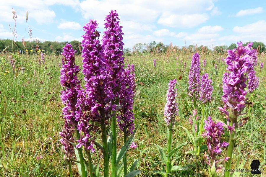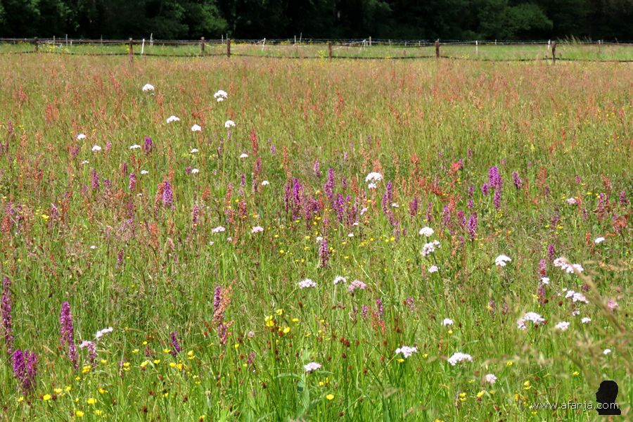 Nadat we ter hoogte van de Lippenhuisterbrug wat libellen hadden gefotografeerd, vervolgden Jetske en ik onze weg in zuidelijke richting over de Ald Hearrewei. Die Ald Hearrewei (vertaald: Oude Herenweg) bestaat uit weinig meer dan een eeuwenoud zandpad en een schelpenpad voor fietsers. Het pad krijgt zijn charme van een mooie kruidenrijke middenberm, die van noord naar zuid vol bloemen staat …