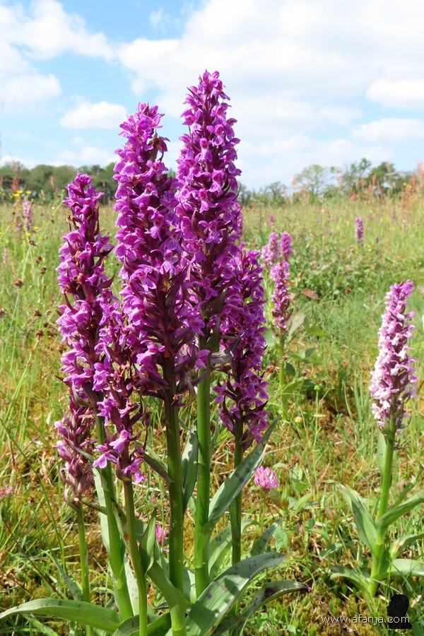 Links en rechts omgeven door struikgewas voert het pad dwars over de Liphústerheide. Bij een klein vennetje naast het pad, maakten we weer even tijd voor een tussenstop om wat foto’s te maken (Google Maps). Nadat we wat orchissen, kleine ratelaars en een paar passerende fietsers hadden gefotografeerd, konden we ook nog een glimp van een ringslang vastleggen …
