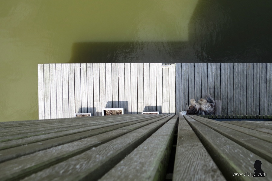 Thuis ben ik sinds Aafjes’ pensioen ook vaak als eerste uit bed, hier bij dit huisje aan de waterkant heb ik daar toch wel extra van genoten …