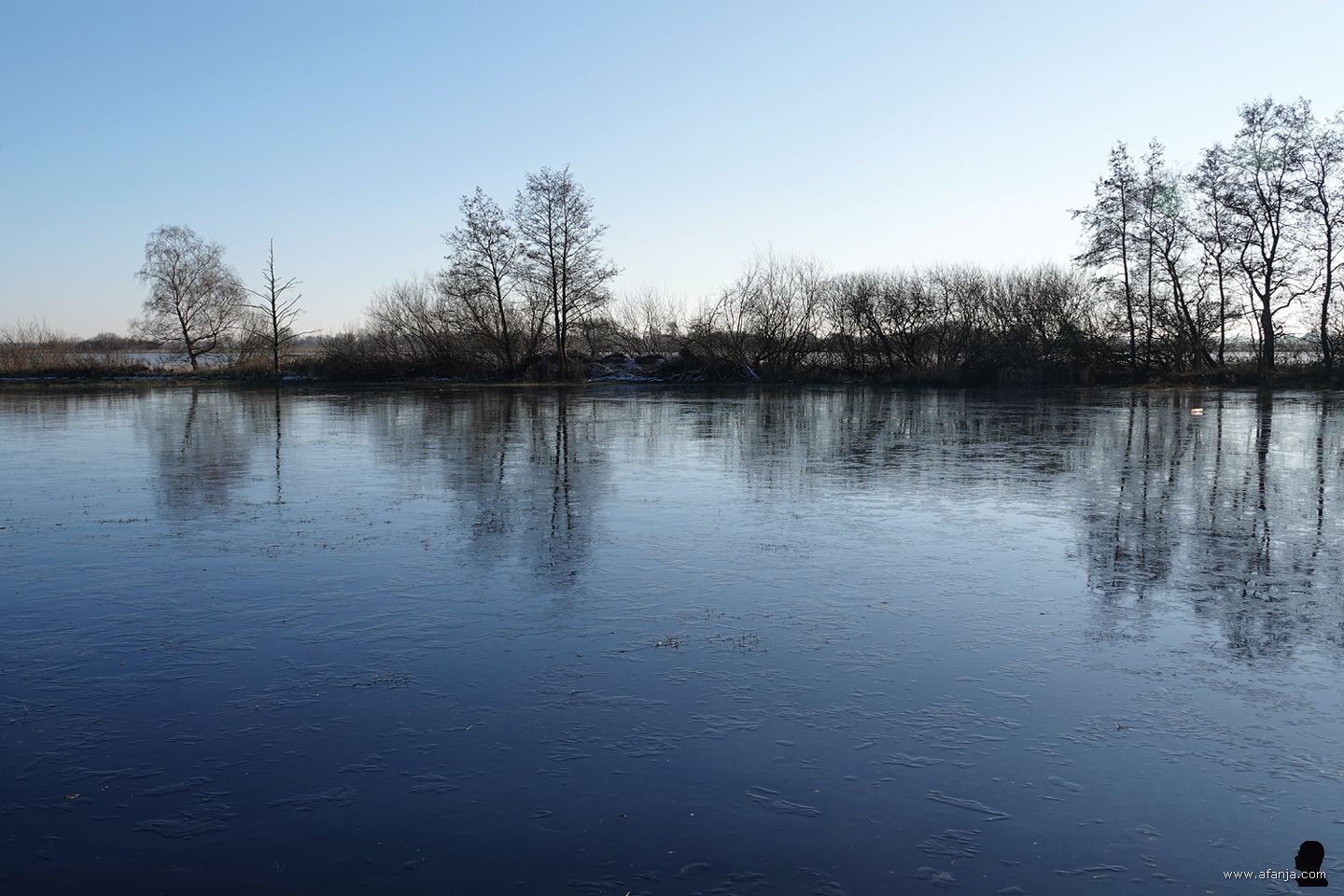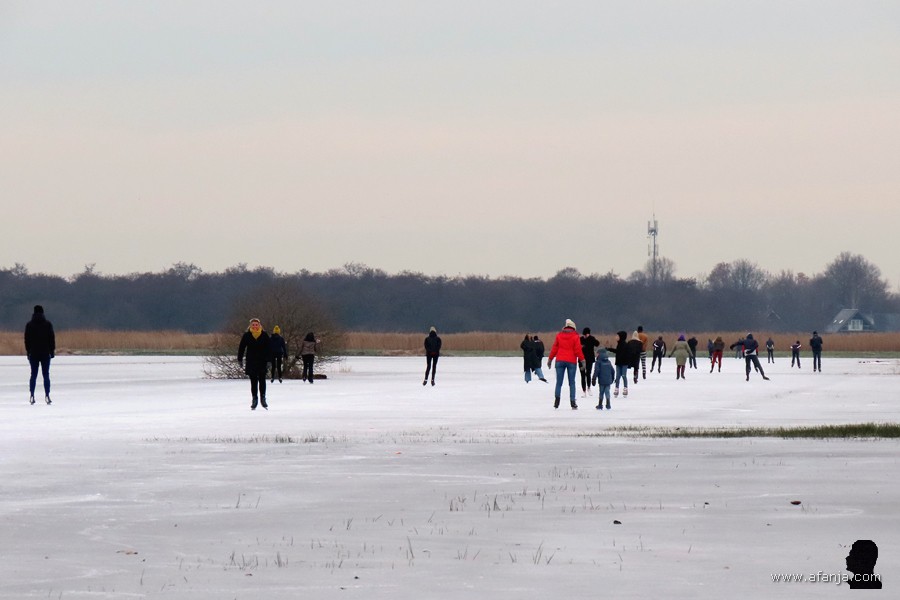 De dooi was in grote delen van ons land al ingetreden, maar op het ondergelopen land bij de Hooidammen ten westen van Drachten kon zondag 14 december nog geschaatst worden. Aan het begin van de middag werd de lokroep van het ijs weer zo sterk, dat ik er toch nog maar even naar toe ben gereden …