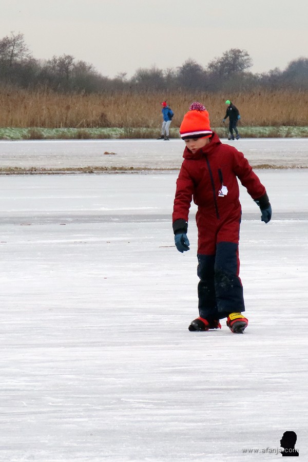 Het deed me deugd om te zien, dat het niet alleen volwassenen waren die zich op de gladde ijzers waren. Er waren ook verrassend veel kinderen op het ijs. De kleinsten werden waar nodig overeind geholpen en gehouden door een van hun ouders. Wat grotere kinderen waren intussen op zichzelf aangewezen. Wie viel werd geacht al snel weer op te krabbelen om daarna gewoon verder te gaan, zoals ik dat zelf in het begin ook talloze malen had gedaan …