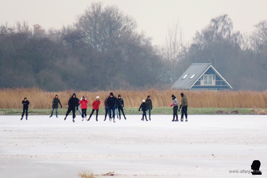 Luidruchtig overvliegende ganzen haalden me na verloop van tijd uit mijn dromerij uit de tijd toen ik zelf nog graag schaatste. Tijd om terug te gaan naar de warmte van de huiskamer …