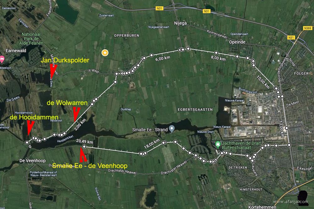Met de auto ben je daarvoor echter ruim 20 km onderweg. Er ligt namelijk geen brug over de vaarweg naar Drachten. Om bij het ijs tussen Smalle Ee en de Veenhoop te komen, moest ik dus vanaf de Hooidammen helemaal via Drachten omrijden. Dat laat meteen zien waarom zowel varen als schaatsen al lang in het bloed van veel Friezen zit. De afstanden van de ene plaats naar de andere zijn over water of ijs vaak veel korter dan over de weg …