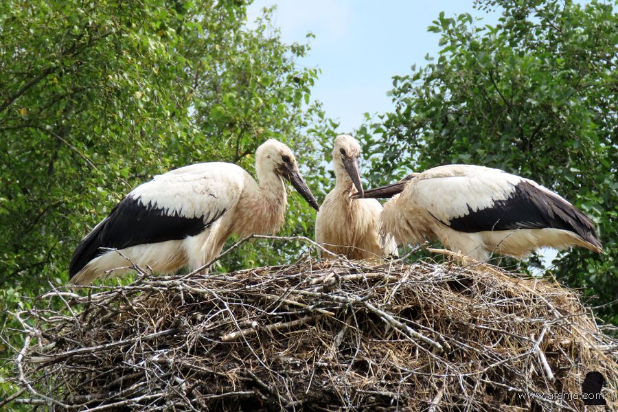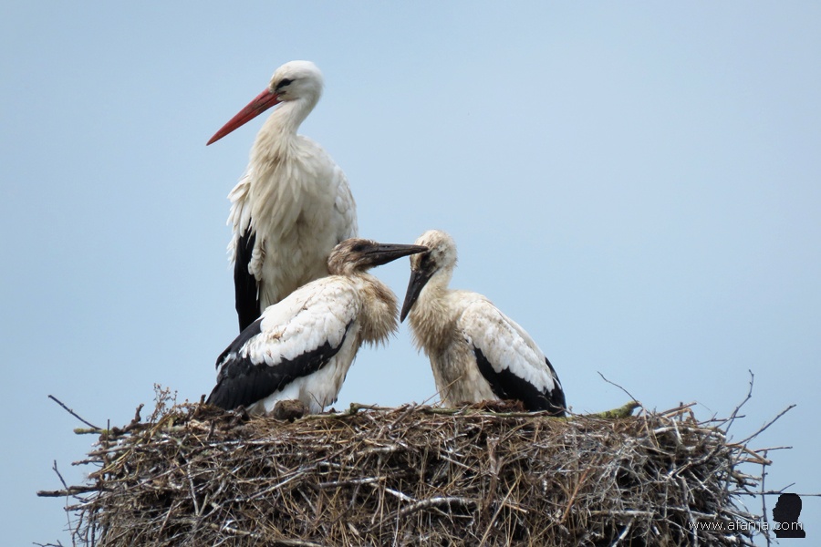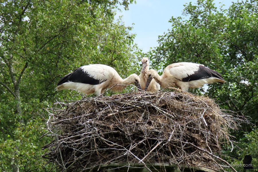 Het is intussen ruim drie maanden geleden dat ik in Skywatch 458 vertelde dat de ooievaars bij Earnewâld waren teruggekeerd uit hun winterkwartier. De natuur heeft in de afgelopen tijd zijn werk gedaan. Op alle bewoonde nesten zitten naast de oude ooievaars nu ook jongen …
