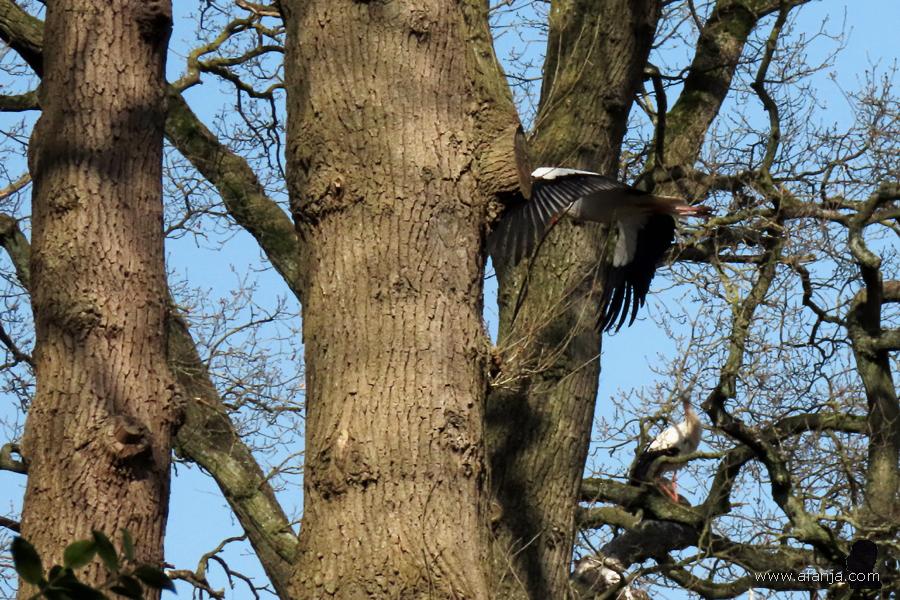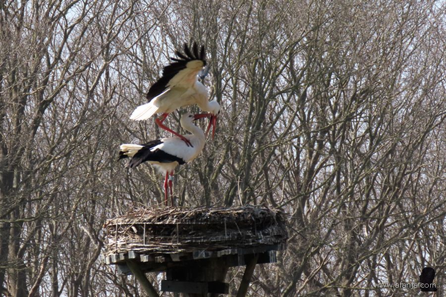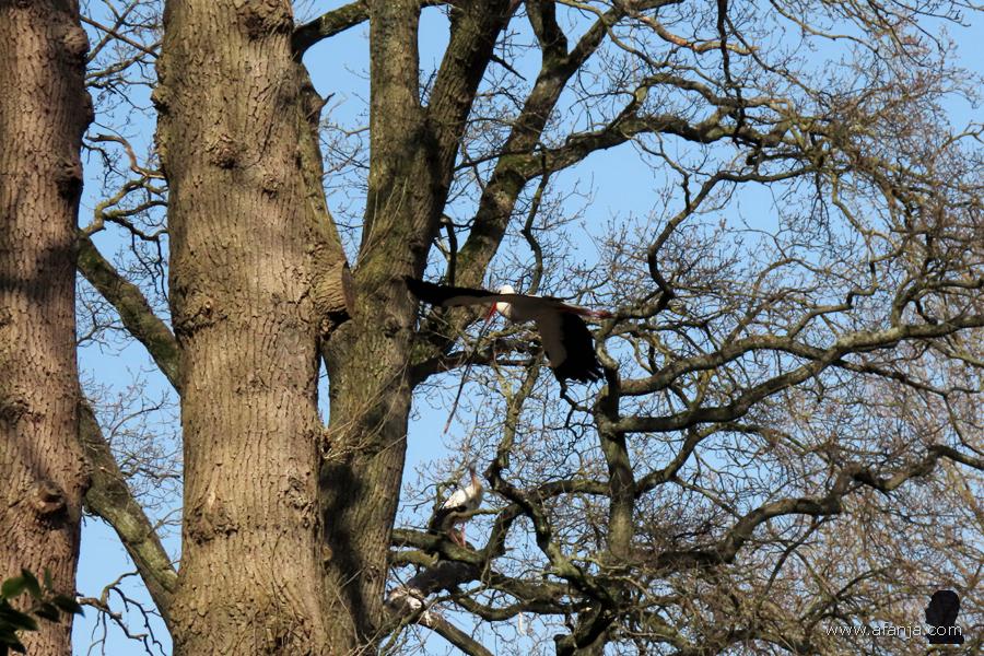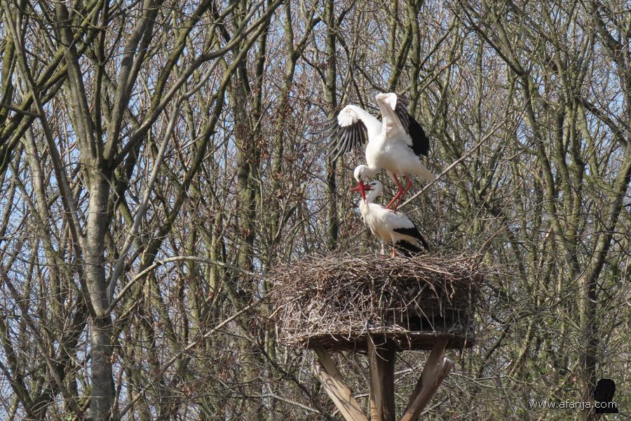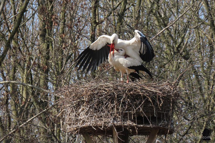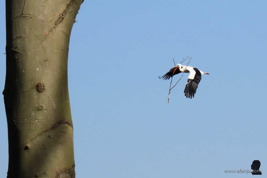 Als pa na korte of langere tijd terugkeert op het nest, klinkt er een klepperend welkom. En terwijl zijn gezin aan de maaltijd gaat, is pa alweer onderweg voor zijn volgende vlucht …