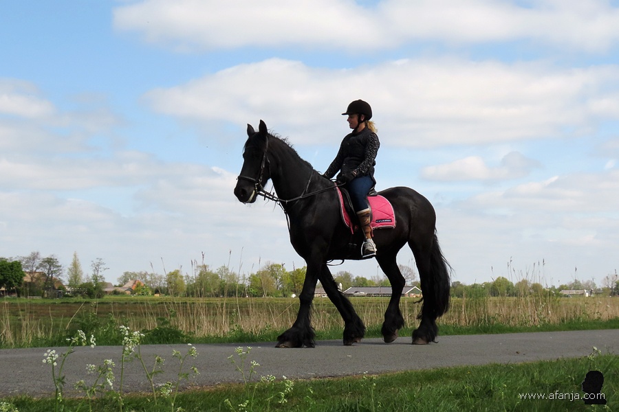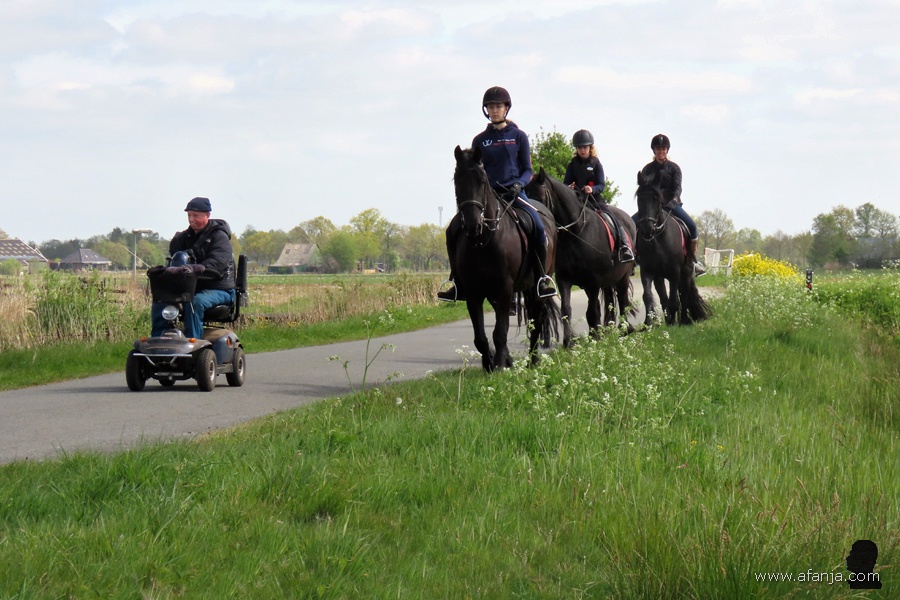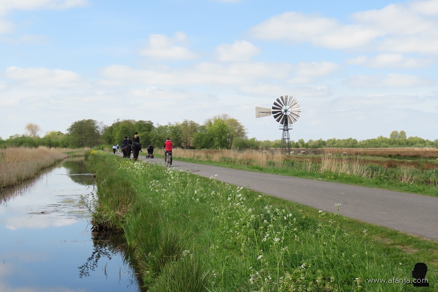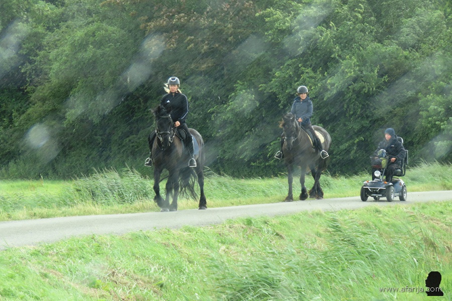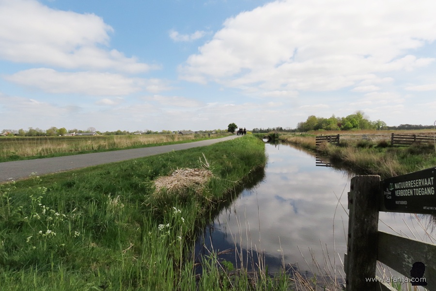 Korte tijd later reden we in rustig tempo over een smal weggetje. Al snel vroeg ik Jetske om even te stoppen, zodat ik een paar foto’s kon maken van de ganzen, de paarden en de glanzende rietkraag in de verte aan de rechterkant van de weg …