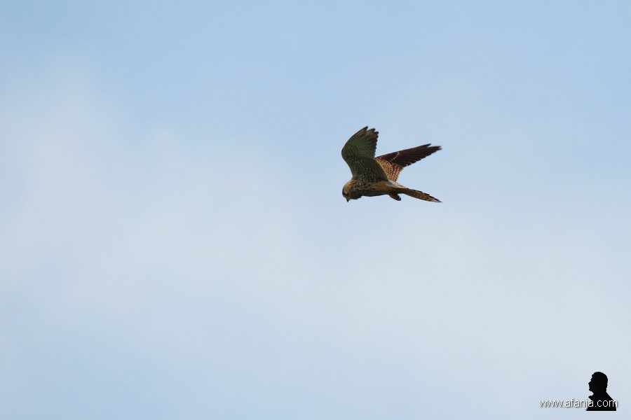 While I was taking some landscape photos of the Frisian meadows, I suddenly saw a kestrel approaching in the distance. In the photo below it can bee seen as a small dot on the right of the screen …