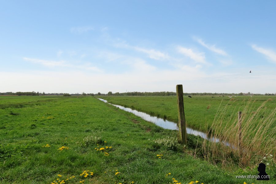 Terwijl ik wat landschapsfoto’s maakte in het Friese weidegbied, zag ik in de verte ineens een torenvalk naderen. Op de foto hieronder is hij rechts in beeld als een klein stipje te zien …