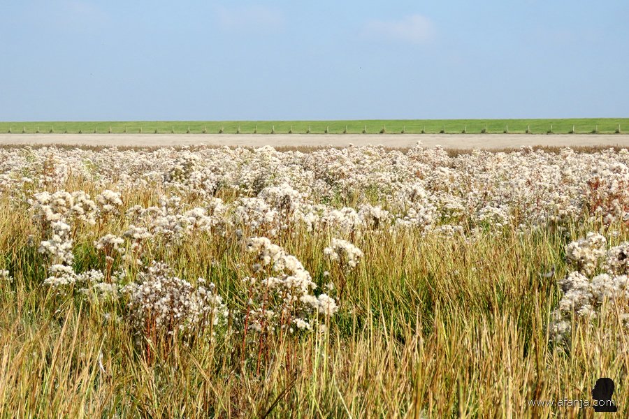 Ze waren mooi, maar ook behoorlijk hinderlijk, die uitgebloeide zeeasters. Ik zat al snel onder de pluisjes die aan mijn kleren plakten, terwijl Jetske in haar speciale natuurtenue nergens last van had …