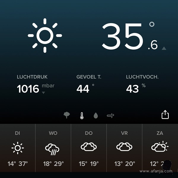 Drie tropische dagen op rij met als uitschieter de 35,6°C waren wat mij betreft wat teveel van het goeie. Het probleem met dertigers is dat de warmte dan ook onafwendbaar het huis binnendringt, daar kon geen luchten meer tegenop. Zelfs een kunstgreep om de schuifpui ’s nachts deels open te houden, bracht geen verkoeling meer. En toch bleek de gemiddelde temperatuur uiteindelijk ‘slechts’ op een bescheiden 18,6°C uit te komen. Met gemiddeld over het land 23 mm neerslag was juli landelijk een zeer droge maand, wij hadden met 53 mm eigenlijk nog niks te klagen …