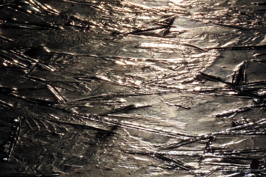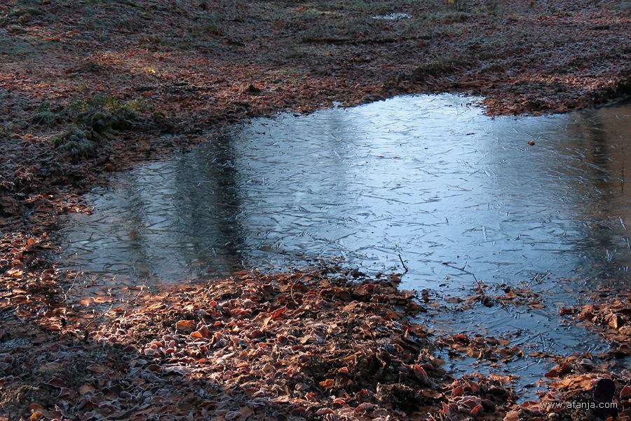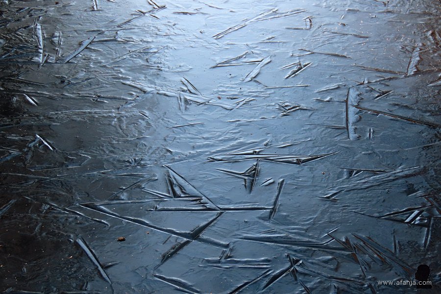 Nee, de uitdaging lag in het fotograferen van de prachtige tekening van het ijs. In voorgaande winters heb ik dergelijke patronen wel in onze vijver gefotografeerd, daar was ik in dit korte wintertje nog niet aan toe gekomen …
