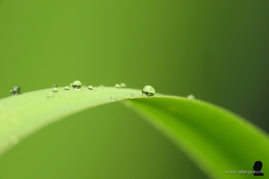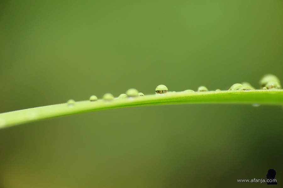 Nadat het hier donderdagavond en -nacht lekker had doorgeregend, ben ik vrijdagochtend de tuin in gegaan om weer eens wat druppels te fotograferen. Vooral de nog maar piepjonge bladeren van de tweekleurige hosta naast de vijver hadden hun werk als druppelvanger weer goed gedaan …