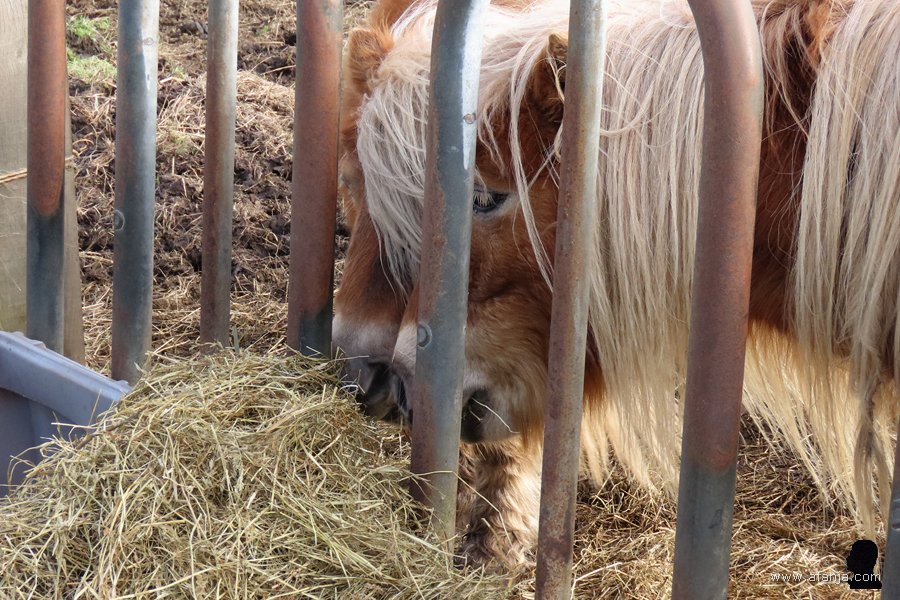 Tijdens mijn eerste ritje in februari waren het geen reeën, maar een paar pony’s die mijn aandacht trokken. Ze stonden innig neus aan neus naast elkaar van hun pas afgeleverde voer te vreten bij een hek in een weiland tussen Oudega en Earnewâld …