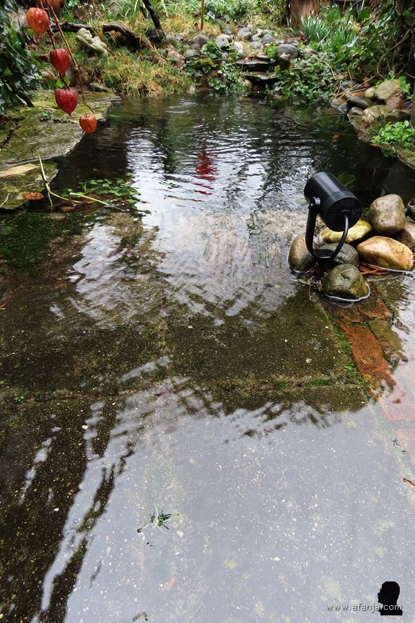 Aan het begin van de middag trok er gisteren een heel klein buitje over onze tuin. Toen ik op het terras probeerde om daar wat foto’s van te maken, kwam ik bedrogen uit. De druppels verdampten vrijwel meteen op de warme terrastegels. Dat leverde dus nog geen enkele verkoeling op. Omdat de temperatuur vandaag intussen ook alweer is opgelopen tot ruim 26°C, heb ik voor vandaag mijn geheime wapen uit het archief tevoorschijn gehaald …