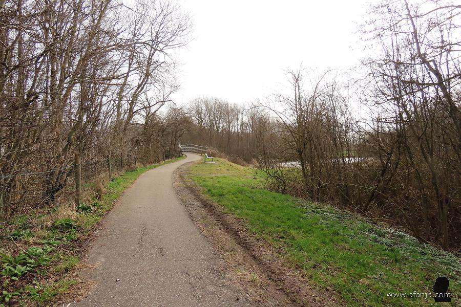 We kwamen uit bij een bruggetje over een oude sluis in de Linde. Vanaf het bruggetje gezien staat er op de linkeroever een mooi bosschage. Op de rechteroever stond een bosje struikgewas dat onlangs om de een of andere reden is verwijderd …