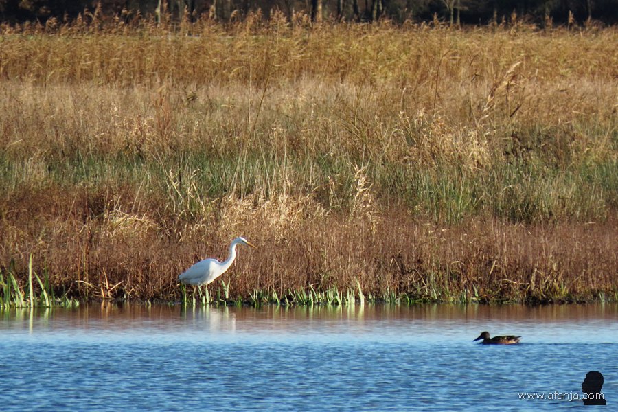 We zaten er genoeglijk. Wachtend op de dingen die hopelijk zouden komen, keken we uit over het water. Af en toe werd er een praatje gemaakt met passerende wandelaars/fotografen …