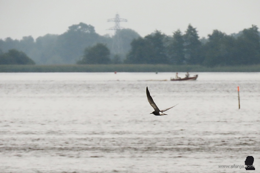 De zwarte stern is een trekvogel die als bedreigd op de Rode lijst staat. Die indruk kregen we zaterdagmiddag gelukkig geenszins. Vanaf het eerste moment dat we in de kijkhut zaten, vlogen er talloze malen zwarte sterns aan ons voorbij. Ik heb er nu eens een keer meer foto’s van kunnen maken dan ik hier nu kan laten zien …