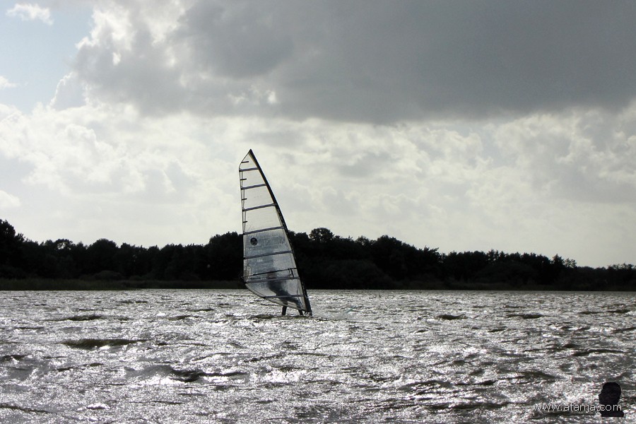Om te voorkomen dat hij daarbij toch net wat te ver zou gaan, besloten we onze rit zekerheidshalve maar snel weer te vervolgen, nadat deze lijvige surfer het plankhaventje was binnengelopen …