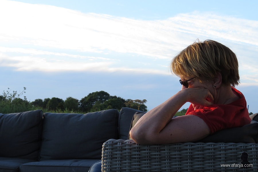 Aan het eind van onze eerste vakantiedag – de tweede tropische augustusdag op rij – gingen we er eens goed voor zitten om vanaf het terras te genieten van de zonsondergang …