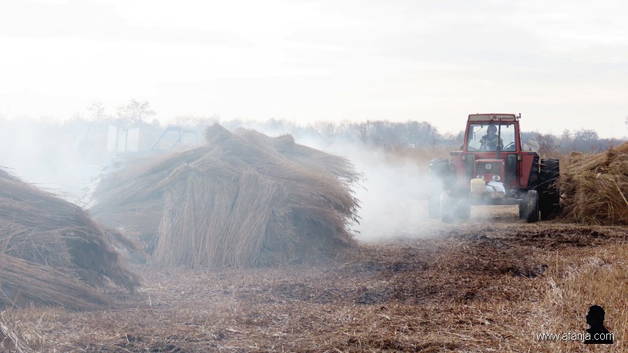 Zodra hij zijn werkplek heeft verplaatst, begint de rietsnijder de ruigte die uit het riet is gekamd op te ruimen. Dat doet hij simpelweg door het te verbranden. Hoe lang dat nog kan, is ook maar de vraag. Er gaan stemmen op om het verbranden te verbieden, dat zou betekenen dat de rietsnijder het moet verzamelen en afvoeren. En wie dat zal betalen …? De rietsnijder, vrees ik. Zo lang die zijn werk nog kan doen tenminste …