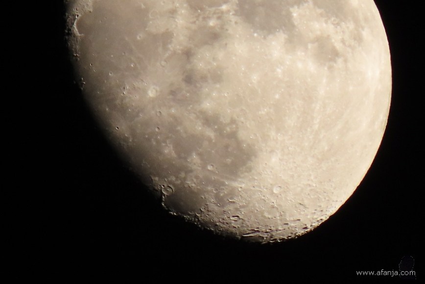Aan het begin van de zondagavond heb ik – ook weer vanuit de tuin – een close-up gemaakt van de maan. Het kraterlandschap toonde zich weer op zijn mooist …