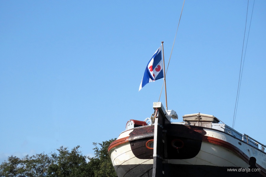 We vervolgen onze kuier op Urk. We laten de Pieter Hakvoortstraat links liggen en volgen de pijl op het briefje achter het raam …