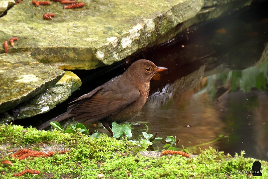 Daardoor heb ik nu vanaf het terras vrij zicht op de schuttingdeur. Daar maken de merels vaak even een tussenlanding om te kunnen bekijken of de kust veilig is. Zodra dat het geval blijkt te zijn, maken ze een korte duikvlucht in de richting van de pergola …