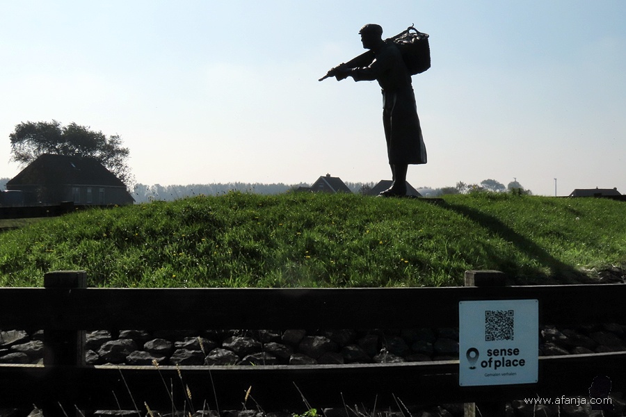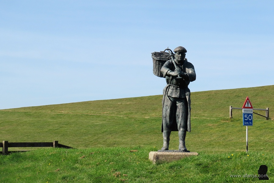Hoewel er een tiental auto’s op de parkeerplaats stond, was er op de dijk en de kwelder geen levende ziel te bekennen. Het monument ‘de Poerdersramp’ stond nog mooi glanzend op de kruin van de dijk en verder heerste er rust en stilte …
