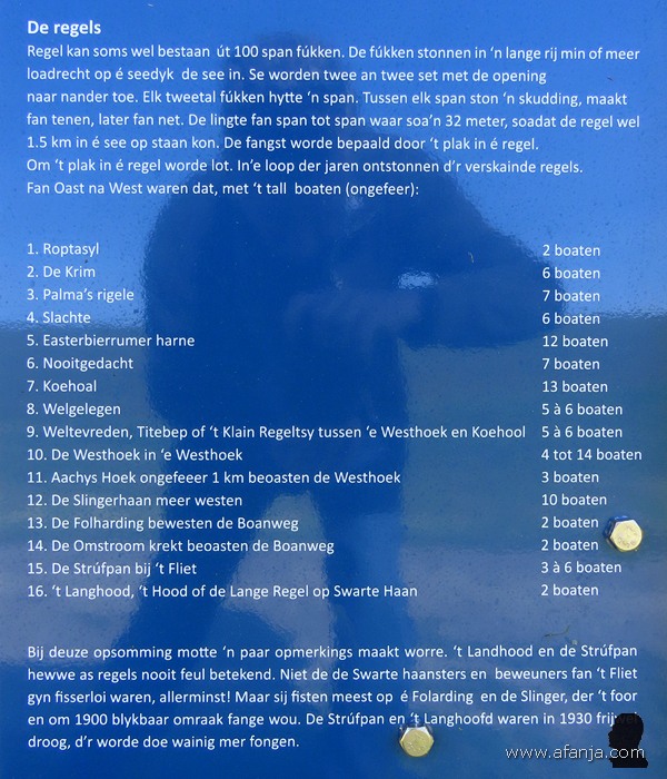 Nog weer wat verder naar rechts loopt aan de voet van de oude dijk De Sédyk. Deze weg gaat een paar kilometer verderop over in de Oudebildtdijk, met zijn lengte van 12,1 km één van de langste straten van ons land. Wij passeren onderweg naar de Westhoek o.a. het portret van Jan Andringa en Rinske Elsinga op een schuur bij hun boerderij aan het begin van de Oudebildtdijk …