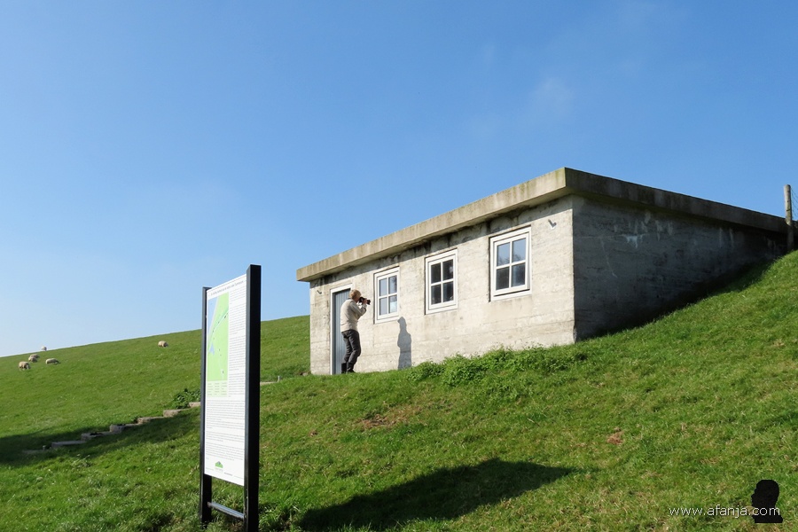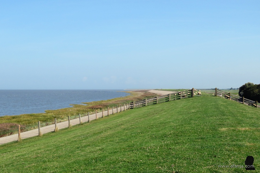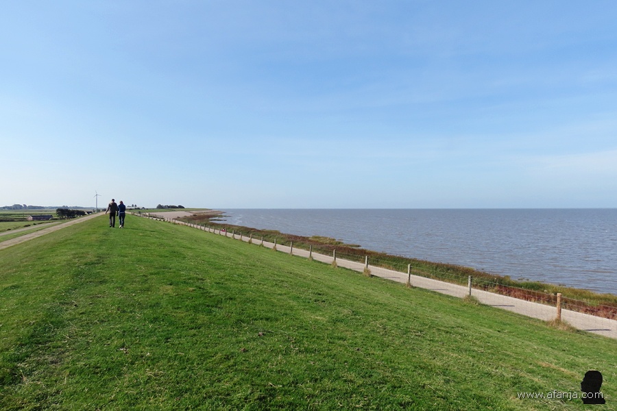 Enkele honderden meters verderop komen we bij ons volgende doel: de Kwelder Westhoek. Terwijl Jetske op de parkeerplaats aan de praat raakte met een vogelaar uit de streek, beklom ik alvast de trap naar de kruin van de dijk …