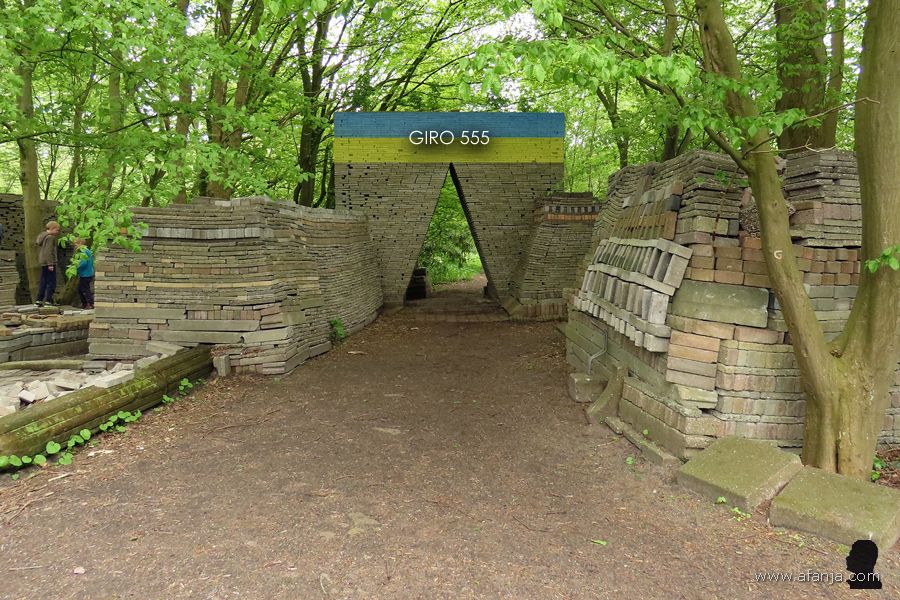 Om te voorkomen dat Aafje ongerust wordt, besluit ik na enige tijd de terugweg te aanvaarden. Terug om de hoek, zie ik haar een stuk verderop al staan. Kun je nagaan hoeveel stenen alleen al in dit deel van de Ecokathedraal zijn verwerkt …