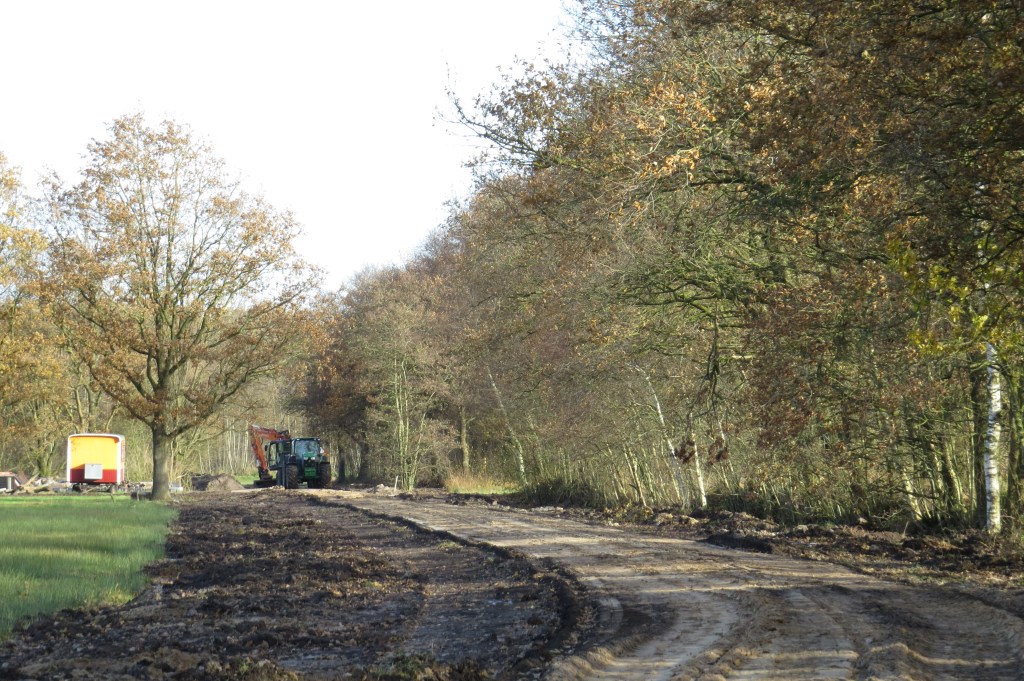 Terug bij de Nije Heawei is te zien, dat het aan de zuidkant van het gebied al niet anders is. Ook hier is langs het eerste deel van het pad alle struikgewas aan de oostkant weggehaald, en de sloot die er lag is gedempt …