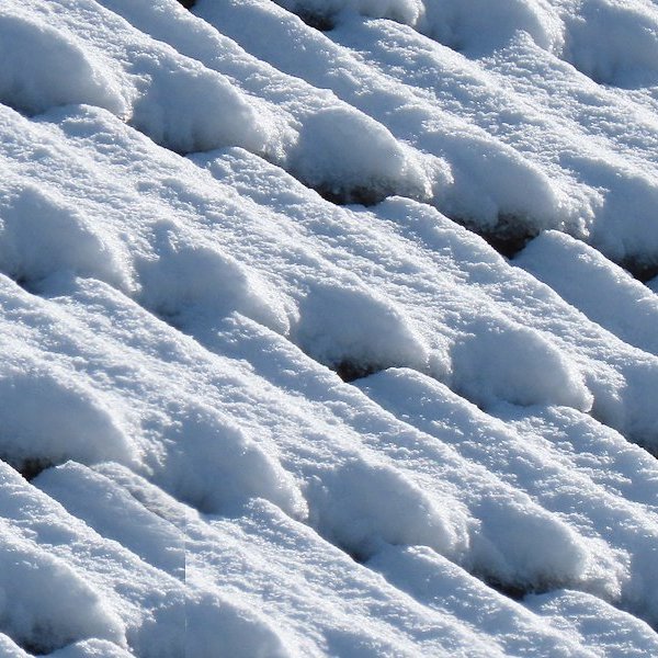 Even een kijkje van dichterbij, want de tussen de spleten geblazen sneeuw levert hier wel sierlijke dunne randjes op, zoals ik ze graag zie …