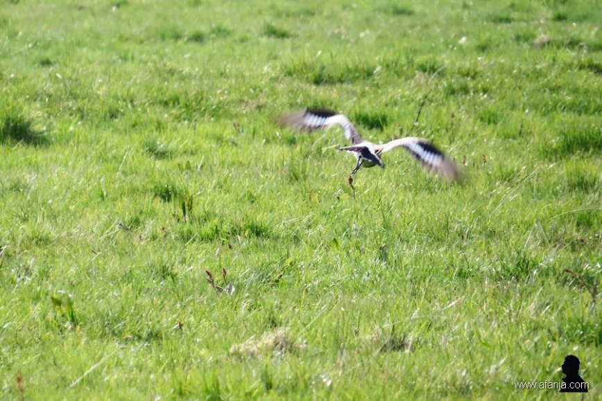 Een grutto die alarmerend opvliegt uit een aangrenzend weiland om zijn jongen te beschermen …