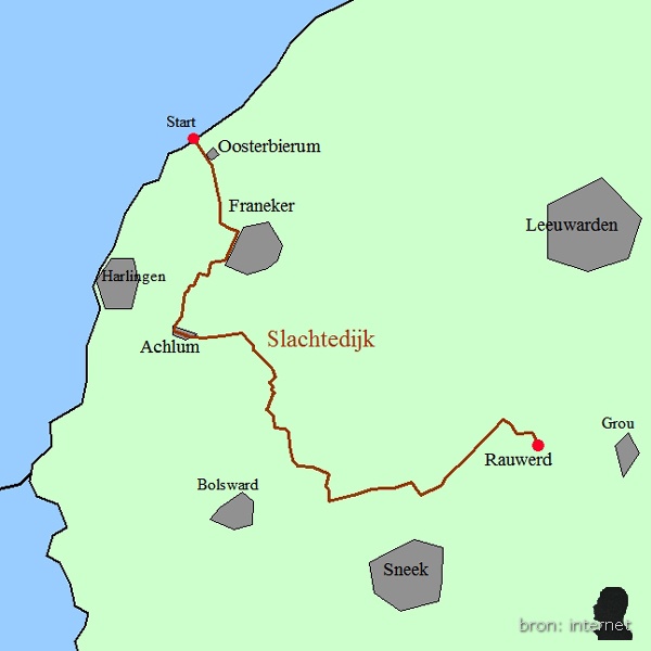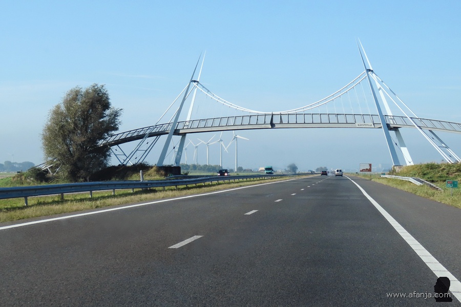 Ter hoogte van de voetgangersbrug ‘de Slachtetille’ (Google Maps) over de A31 scheen de zon al volop. Deze voetgangersbrug is de Alpe d’Huez van de Slachtemarthon, die één keer in de vier jaar gelopen wordt over de bijna 42 km lange, eeuwenoude Slachtedyk …